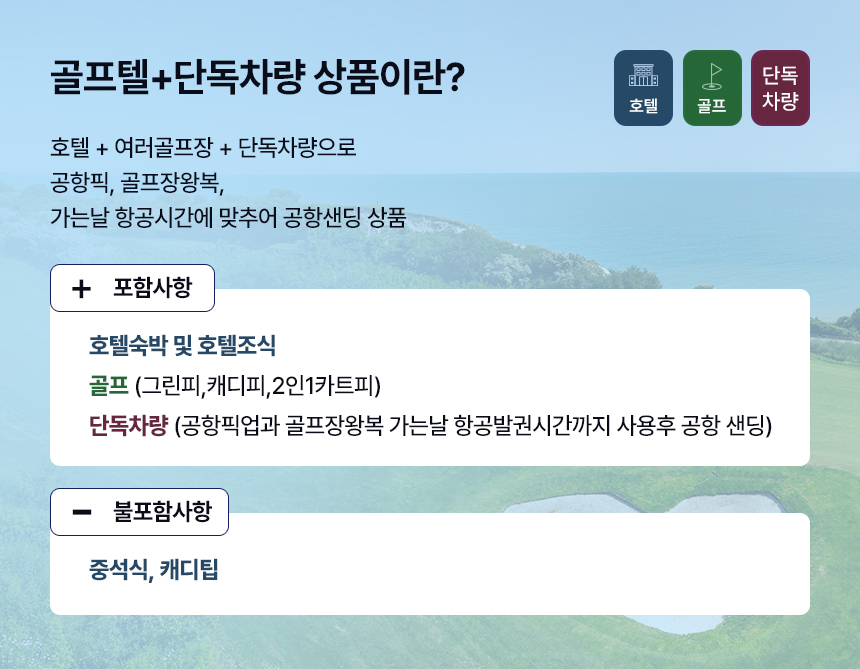 ¿øÇϴ ȣÅÚ¿¡ ¸Ó¹°¸ç ´Ù¾çÇÑ °ñÇÁÀåÀ» ÀÌ¿ëÇÒ ¼ö ÀÖ´Â »óǰÀ¸·Î, Àü ÀÏÁ¤ ´Üµ¶ Â÷·®À» ÅëÇÑ °øÇ× ¿Õº¹ ¼Û¿µ, °ñÇÁÀå ¿Õº¹ÀÌ Æ÷ÇԵǾî ÀÖ½À´Ï´Ù.