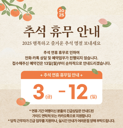 Ãß¼® ¿¬ÈޱⰣ µ¿¾È ÀüÈ¿Í Ä«Ä«¿ÀÅåºñÁî´Ï½º ä³ÎÀ» ÅëÇÑ »ó´ã ¹× ¿¹¾àÀ» ¿î¿µÇÏÁö ¾ÊÀ¸´Ï Âü°íÇØ Áֽñ⸦ ¹Ù¶ø´Ï´Ù.